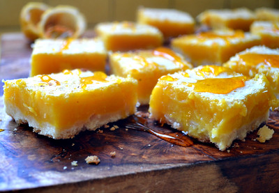 A sunny passion-fruit (lilikoi) curd on buttery shortbread, lightly dusted with sugar.